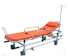 The stretcher with safety lock, it must be locked up when transport the patients, and opened out when get on the ambulance. Both ends of the stretcher,